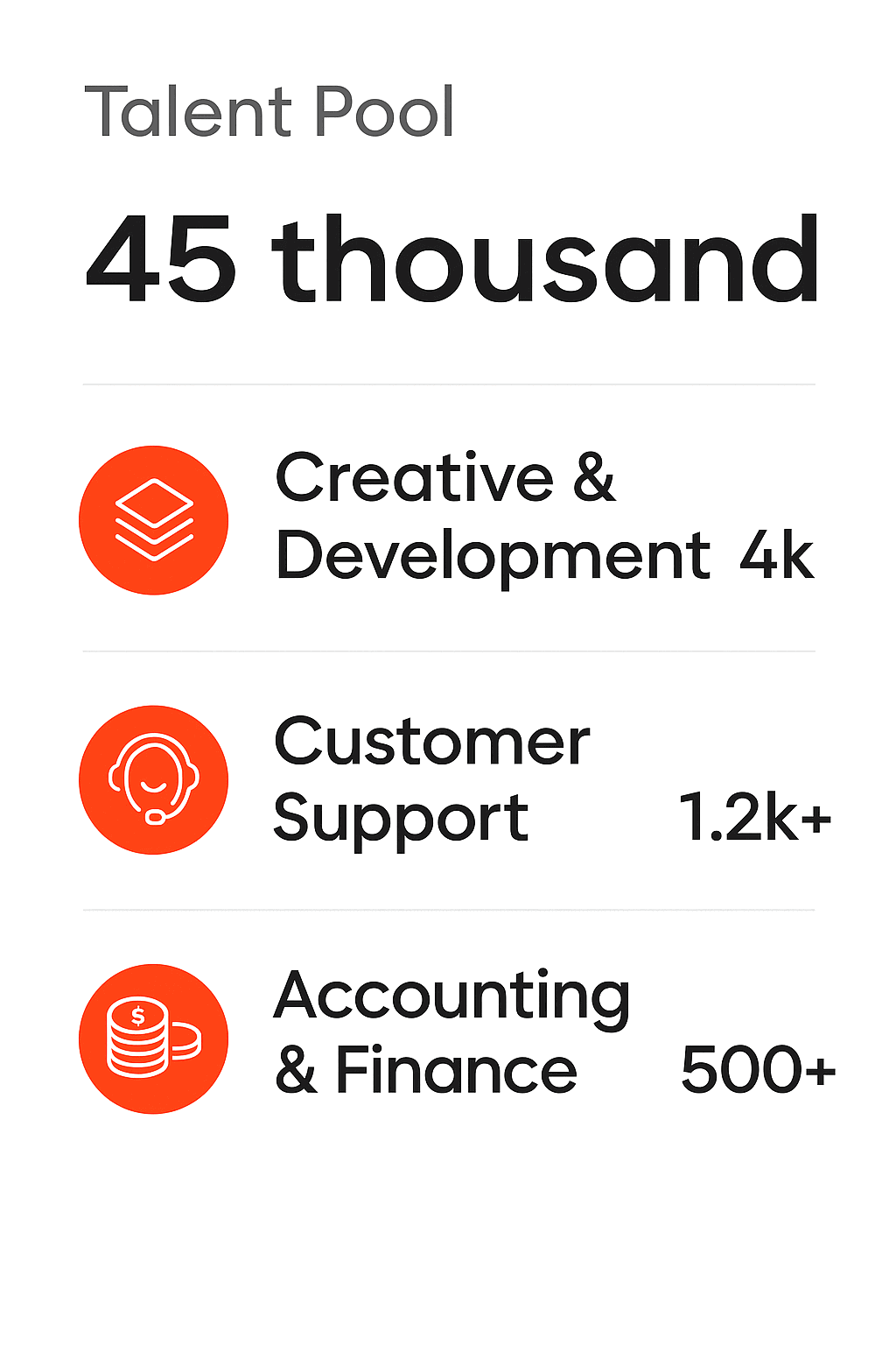 At OutsourceWorkload, we connect you with talented professionals across various job functions, offering savings of up to 70% per team member compared to local hiring. More importantly, we ensure that every partnership is built on trust, transparency, and long-term success.